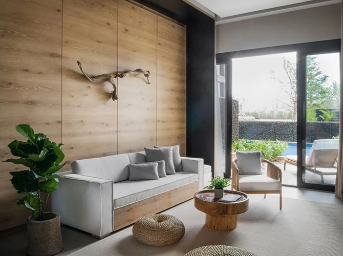 星級酒店 該項目位于景色宜人的著名旅游城市“三亞”。該項目重點工程三亞海棠灣陽光壹酒店1 Hotels以自然及可持續(xù)發(fā)展為本,擁有294間面積達62至1,300平方米的客房、套房及復式別墅。回歸自然、簡約原始的設(shè)計風格,巧妙搭配多種未經(jīng)拋光的當?shù)靥烊皇暮湍静模蛟鞙喓穸嘣募y理及細膩和諧的配色,輔以原木打造的凳子、書桌、藤編地毯、融進自然的定制藝術(shù)品以及有機棉裝飾等,純粹而時尚。