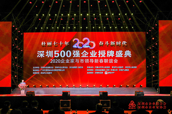 12月10日,由深圳市企業(yè)聯(lián)合會、深圳市企業(yè)家協(xié)會、《時代商家》雜志主辦的“壯麗七十年,奮斗新時代”深圳500強企業(yè)授牌盛典在深圳灣體育中心春繭體育館隆重舉行。