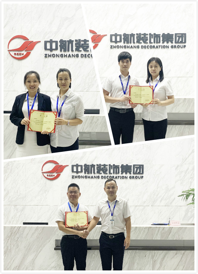 經(jīng)過評定,張豐先、謝娜娜、柴啟勇三位同事正式成為中航裝飾的內(nèi)部講師,期待日后這些優(yōu)秀的講師們?yōu)槲覀儙砀嗟闹R和干貨。