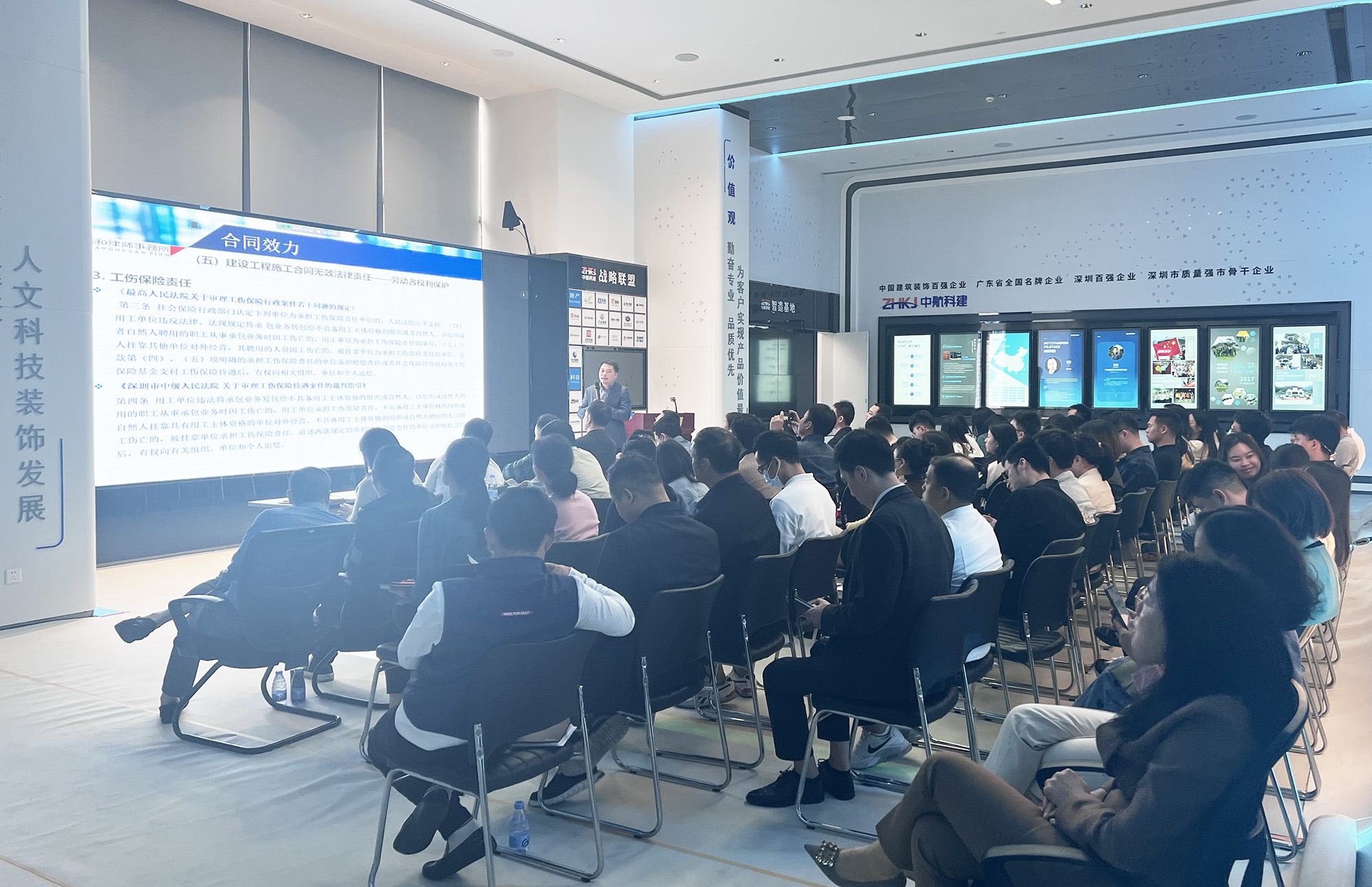 此次培訓(xùn)邀請(qǐng)了深圳廣和律師事務(wù)所黃偉律師以建筑行業(yè)法律實(shí)務(wù)及工程管理風(fēng)險(xiǎn)防范為主題,對(duì)從合同簽訂與生效、合同管理到履行過程中的操作和風(fēng)險(xiǎn)防范,以及與建筑行業(yè)相關(guān)的重點(diǎn)法律規(guī)范等多方面內(nèi)容進(jìn)行了詳細(xì)講解,并結(jié)合公司實(shí)際工作,深入淺出地將晦澀難懂的法律條文和實(shí)際案例相結(jié)合,由案說法、以法析案,通俗易懂地介紹了工作中可能會(huì)遇到的相關(guān)法律知識(shí),對(duì)日常工作中經(jīng)常涉及的法律問題,應(yīng)防范的法律風(fēng)險(xiǎn)進(jìn)行了細(xì)致分析,為大家就如何防范經(jīng)營法律風(fēng)險(xiǎn)、合規(guī)風(fēng)險(xiǎn)等公司治理中的重點(diǎn)問題上提供了有效指導(dǎo)。