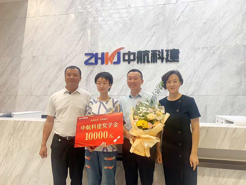 ? ? ? ? 喜逢高考金榜題名時,為共同分享這份喜悅,勉勵更多的職工子女奮發圖強,2023年8月18日,中航科建建設集團喜氣洋洋,今年被上海同濟大學錄取的集團副總侯術安之女候辰被邀請到公司,集團領導頒發了獎學金并送上了對員工家庭的關愛和祝福。