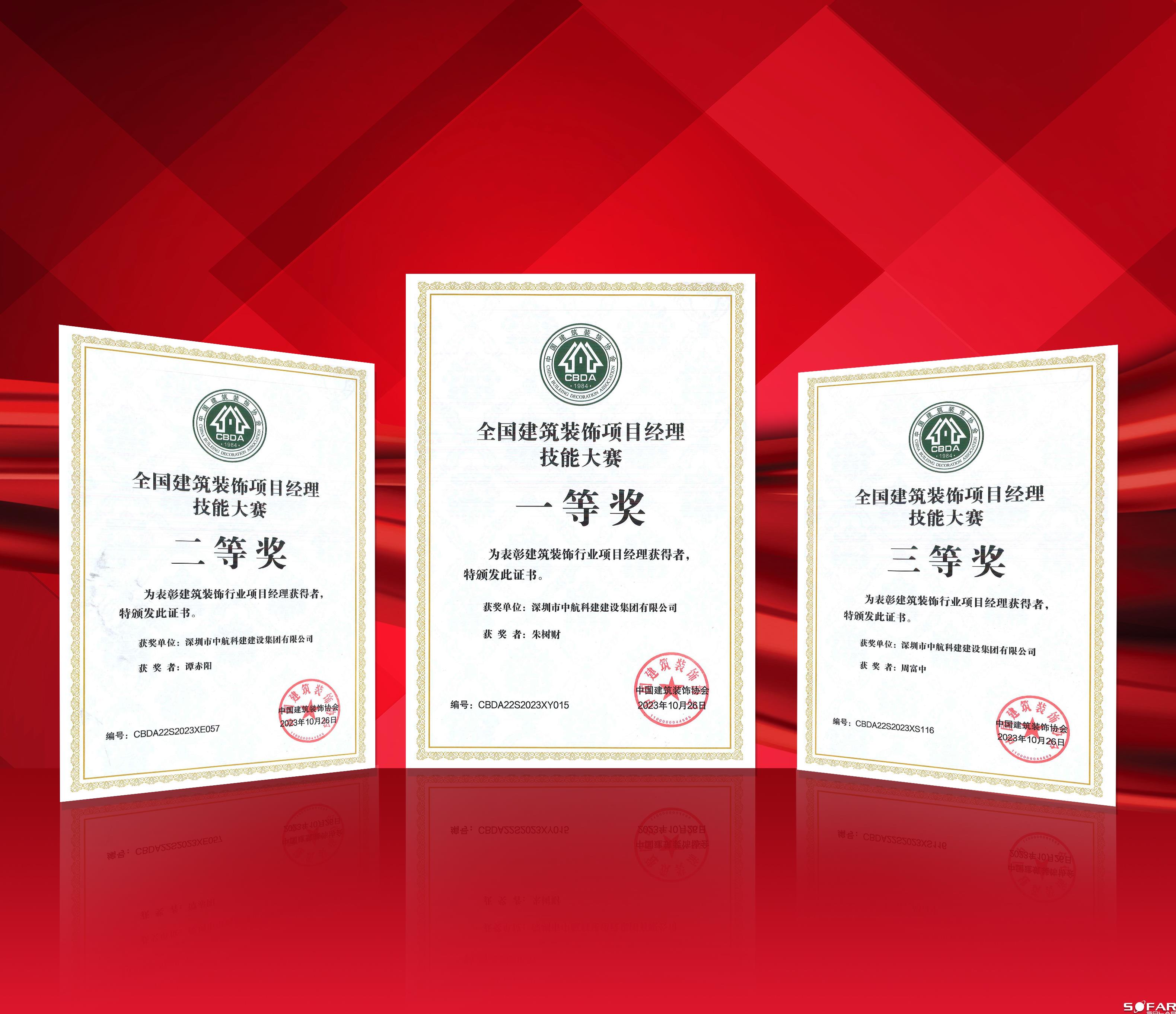 ? ? ? ?近日,由中國建筑裝飾協(xié)會主辦的“首屆全國建筑裝飾項(xiàng)目經(jīng)理技能大賽”圓滿帷幕。中航科建項(xiàng)目經(jīng)理榮獲一等獎、二等獎、三等獎多個獎項(xiàng),展現(xiàn)了公司在建筑裝飾領(lǐng)域的強(qiáng)大實(shí)力和項(xiàng)目管理的卓越水平。