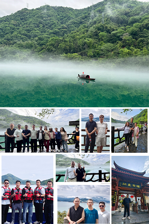 最后一站,中航團隊來到郴州東江湖景區。行及至小東江棧道,天地驟然化作水墨長卷。霧靄自湖面蒸騰而起,時而如白練繞青峰,時而似輕紗籠碧樹,云霧如紗纏繞峰巒,我們成員穿行在這如夢如幻的景致之中,恍若踏入了一幅天然的水墨畫卷,每一步都踏著詩意與遠方。