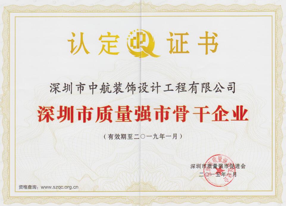 中航裝飾作為深圳市質(zhì)量促進會的會員單位,于2015年獲得深圳市質(zhì)量強市骨干企業(yè),2016年深圳質(zhì)量百強企業(yè)。一直遵循“視質(zhì)量為生命,重責任于泰山”的經(jīng)營方針,重質(zhì)量、講誠信、樹品牌,中航裝飾的發(fā)展也一直體現(xiàn)著靠質(zhì)量贏得市場,以遠見成就發(fā)展的宗旨。